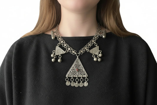 Vintage Silver Iraqi Kurdish Necklace with Charms