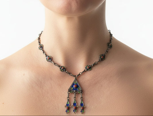 Vintage Pair of Silver and Enamel Moroccan Pendant