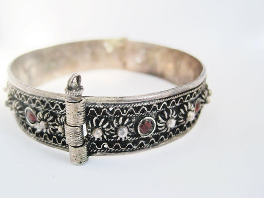 Matching Pair of Silver and Garnet Middle East Bracelets
