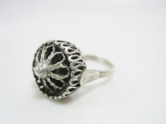 Antique Ottoman Balkan Silver Filigree Ring Size 6