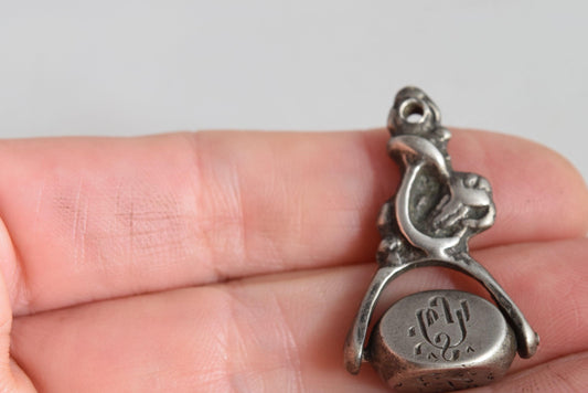 Antique Ottoman Revolving Silver Seal Pendant with Armenian an Arabic Writing