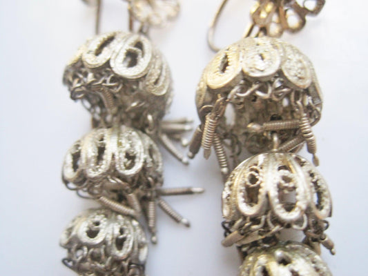 Vintage Silver Chinese Earrings with Chandelier Design and Screw Back Mechanism
