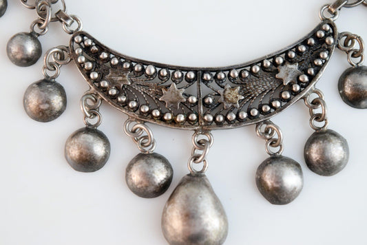 Vintage Silver Egyptian Dainty Choker Filigree Necklace with Stars
