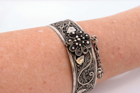 Vintage Silver Filigree Ottoman Style Tunisian Hinged Bracelet