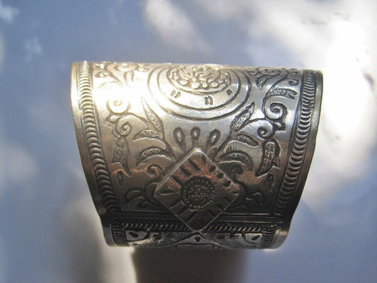 Vintage Silver Flared Siwa Cuff. Berber Bracelet Signed by Mohammed Al Makkawi