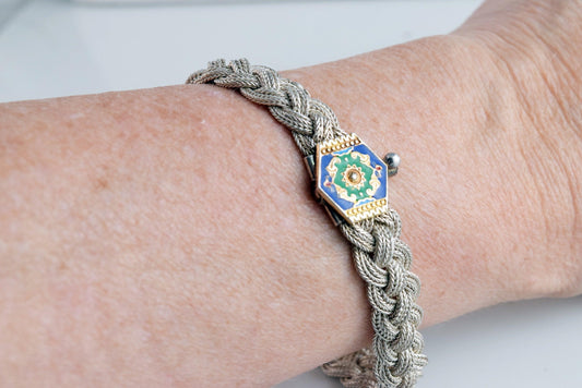 Vintage Sterling Silver and Enamel Braided Turkish Bracelet