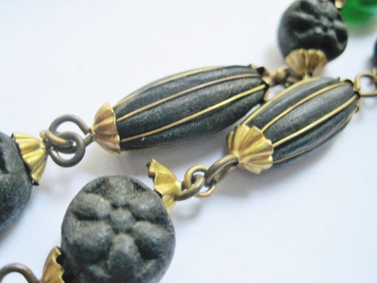 Vintage Tunisian Scented Beads Crescent Necklace of Skhab, Berber Jewelry