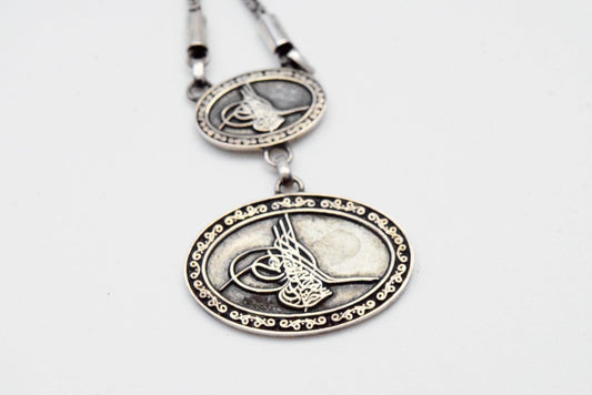 Vintage Turkish Blackened Silver Tughra Necklace