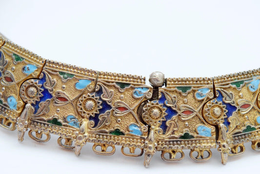 Vintage Turkish Caucasian Style Sterling Silver and Enamel Choker