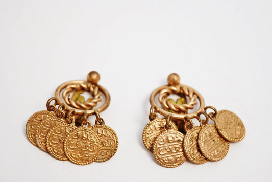 Vintage Turkish Gold Gilt Brass Coin Clip On Earrings