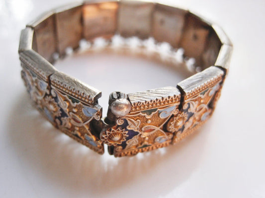 Vintage Turkish Silver and Enamel Caucasian Style Bracelet