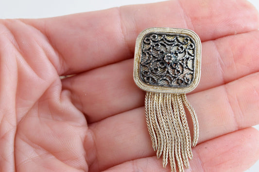 Vintage Turkish or Greek Earrings with Graduated Tassel of Foxtail Chains