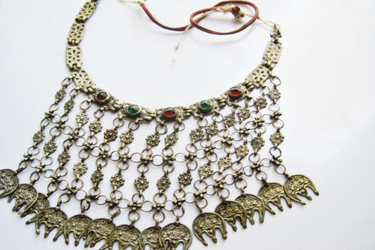 Antique Berber Gold Gilt Silver Choker Bib Necklace with Crescent Moons and Hands of Fatima