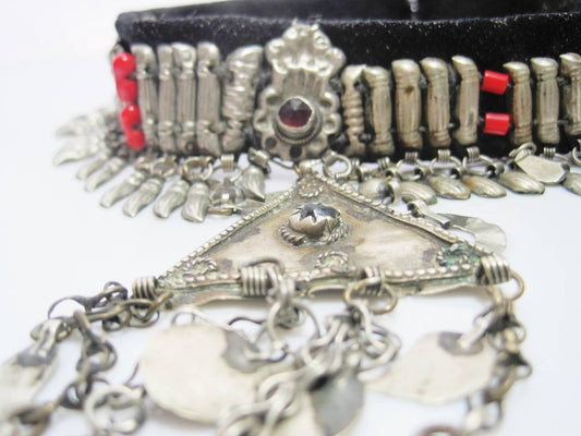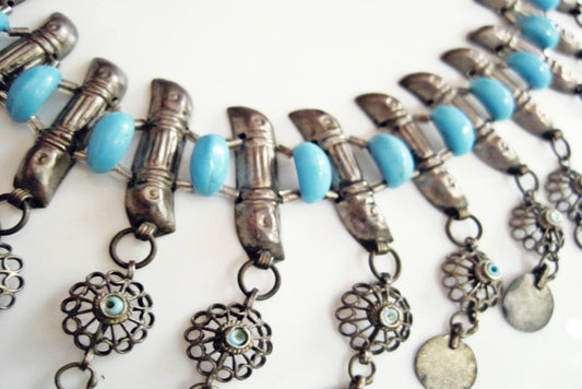 Antique Balkan Ottoman Silver and Blue Beads Choker Necklace