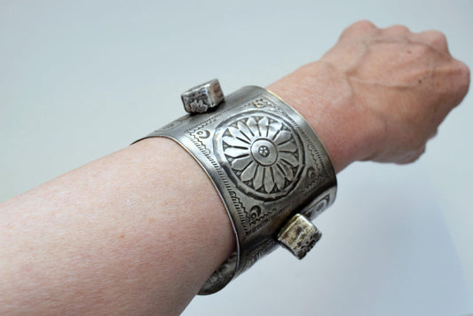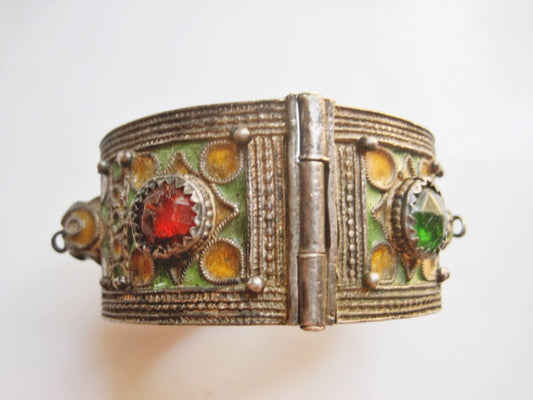 Vintage Silver and Enamel Moroccan Berber Bracelet