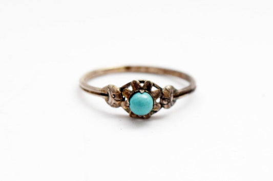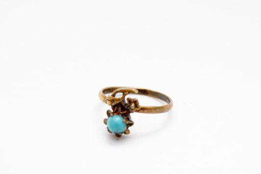 Chinese Export Silver and Turquoise Flower Ring