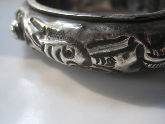 Vintage Miao Chinese Minority Silver Bracelet with Fish Motif
