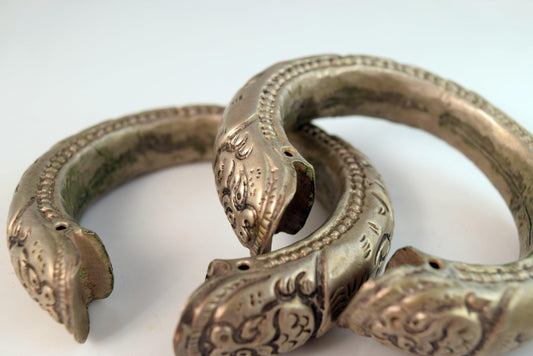 Antique Rare Pair of Silver Nepal Anklets or Foot Bracelets