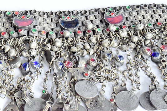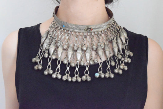 Vintage Silver Tunisian Rihana Chain Necklace with Berber Pendants