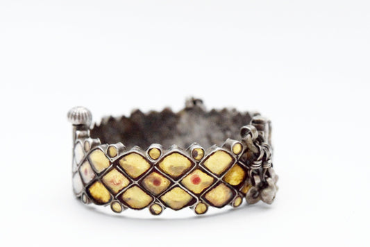 Vintage Silver Indian Bangle with Yellow Glass Insets