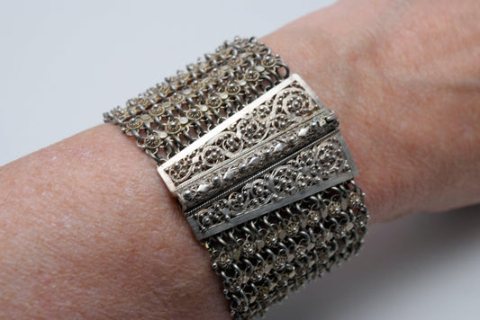 Antique Silver Ottoman Filigree Link Bracelet