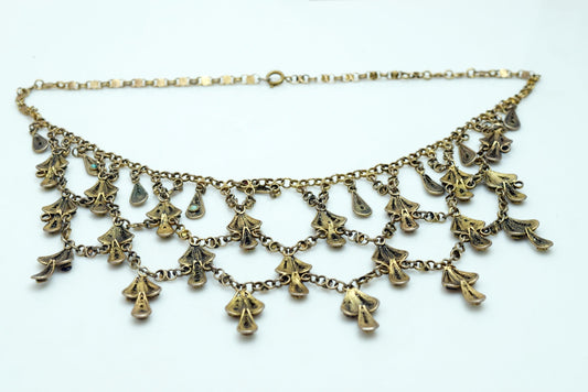 Vintage Middle Eastern Fine Gold Gilt Silver Filigree Bib Necklace