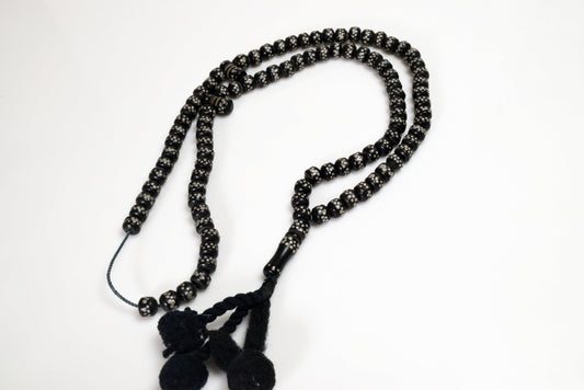 Vintage Bakelite Black Prayer Beads or Misbaha Inlaid Imitation Yusr Beads