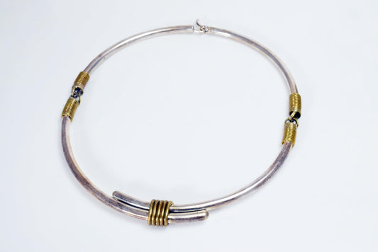 Vintage Mexican Choker Necklace Sterling Silver with Brass Accents