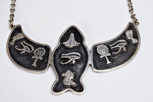 Vintage Silver Egyptian Hieroglyphics Statement Choker Necklace
