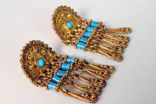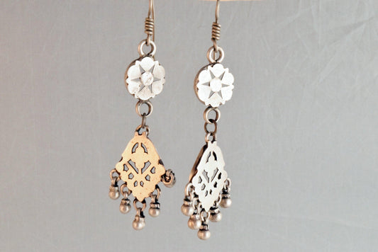 Vintage Long Rajasthan Indian Earrings Made of Silver