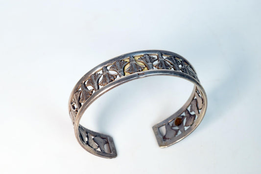 Vintage Lotus Flower Silver Egyptian Cuff Bracelet