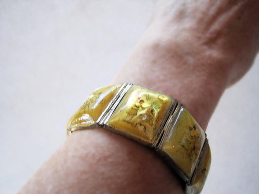 Vintage Middle East Hand Painted Mother of Pearl Story Bracelet
