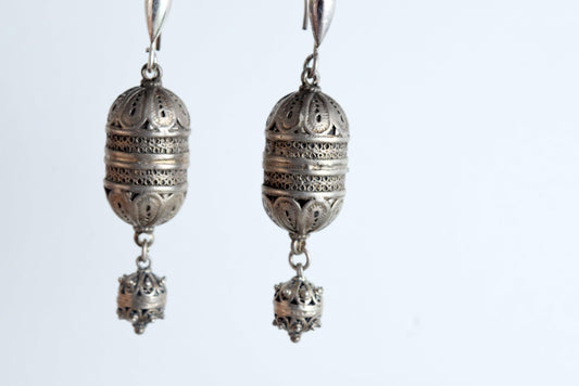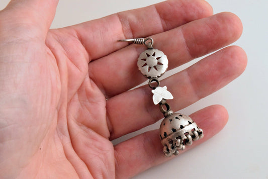 Vintage Rajasthan Indian Silver Jumka Earrings