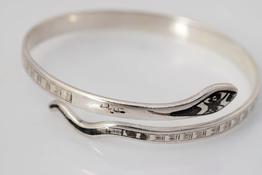 Vintage Art Deco Iraqi Silver and Niello Snake Bracelet