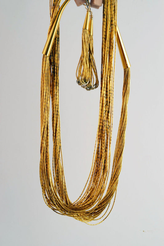 Vintage Liquid Silver Necklace and Earrings Set, Gold Plate over Sterling Silver