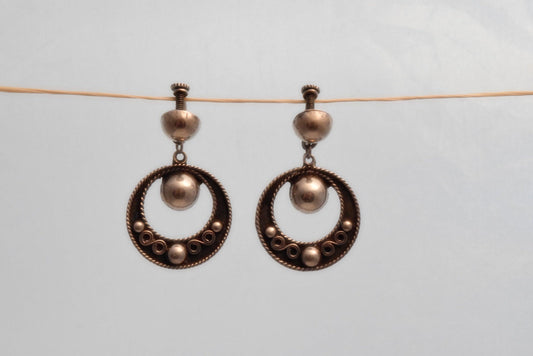 Vintage Turkish Silver Filigree Clip On Earrings with Tassels