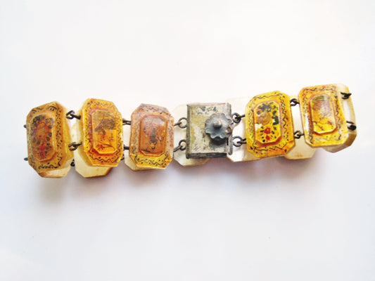 Vintage Hand Painted Mother of Pearl Bracelet with Silver Clasp