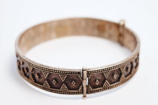 Vintage Kazakh Style Sterling Silver Hinged Bracelet for Large Wrist