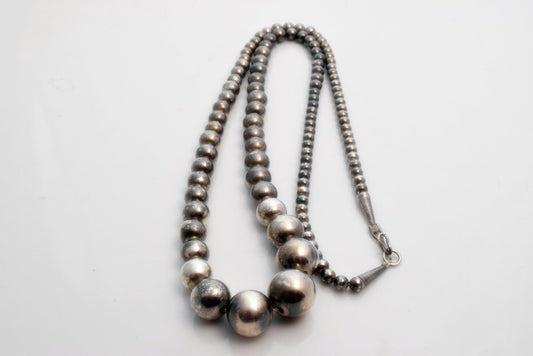 Vintage Long Navajo Sterling Silver Ball Necklace with Graduated Bench Beads