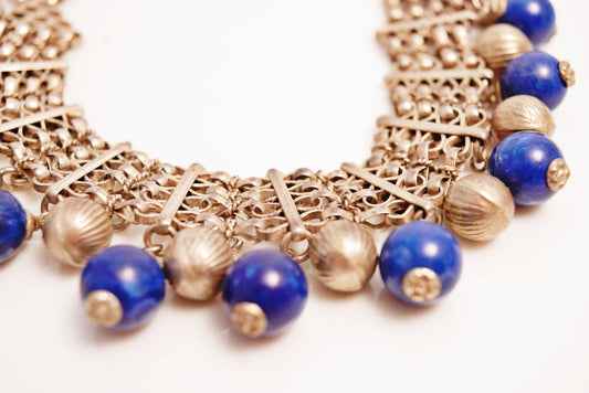 Vintage Set Egyptian Silver and Lapis Necklace and Earrings