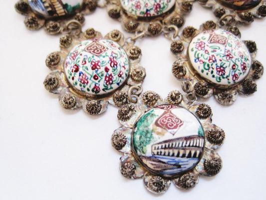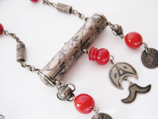 Ottoman Silver and Niello Amulet Necklace with Bakelite Beads