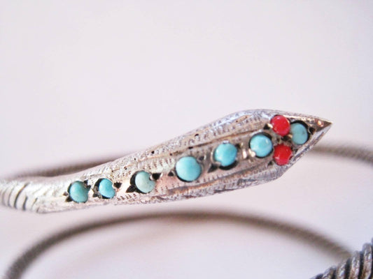 Vintage Egyptian 900 Silver Snake with Gemstones