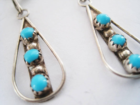 Vintage Native American Sterling Silver and Turquoise Dangle Earrings