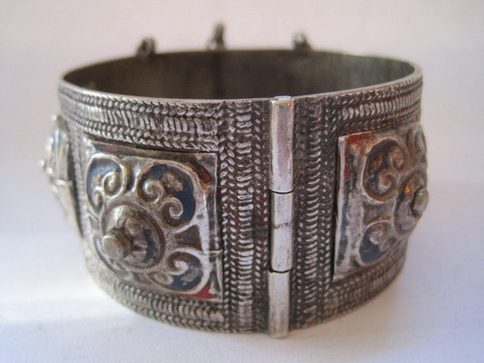 Vintage Moroccan Berber Silver and Enamel Bracelet from Fez or Meknes