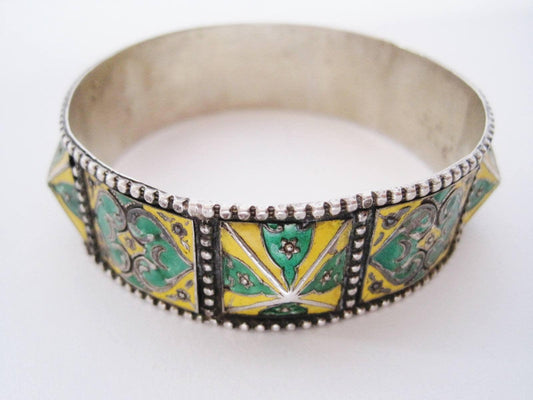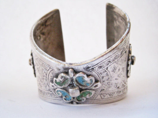 Vintage Berber Enamel and Silver Moroccan Flared Cuff