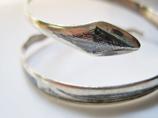 Vintage Middle East Silver and Niello Double Coil Snake Bracelet