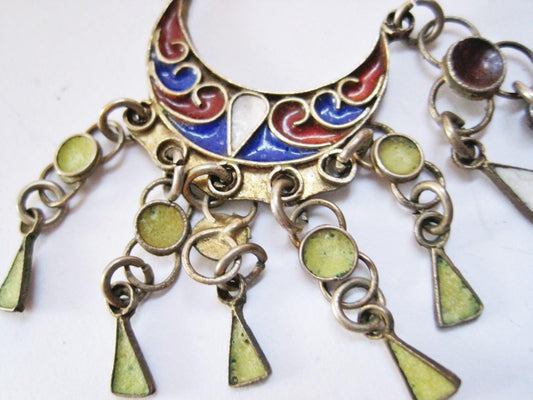 Vintage Silver and Enamel Kabyle Style Export Necklace from Algeria with French Hallmark