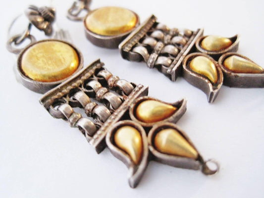 Vintage Silver and Gold Plated Indian Dangle Earrings from Rajasthan
