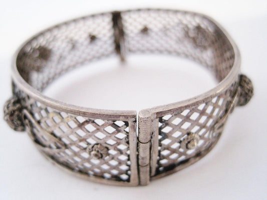 Vintage Silver Tunisian Hinged Bracelet with Arabic Calligraphy