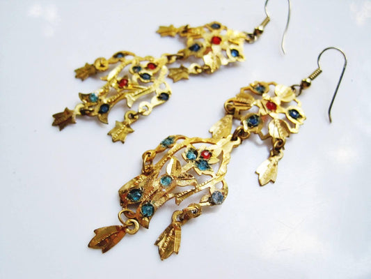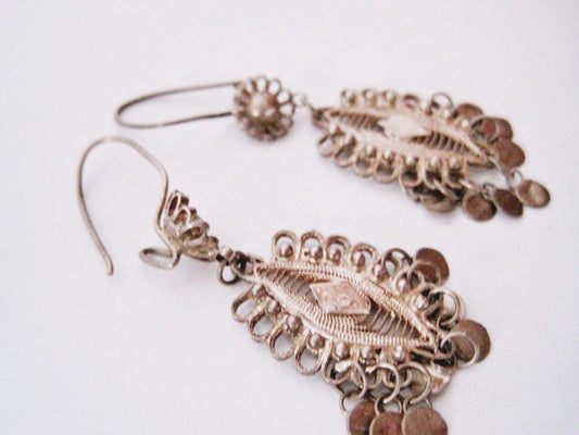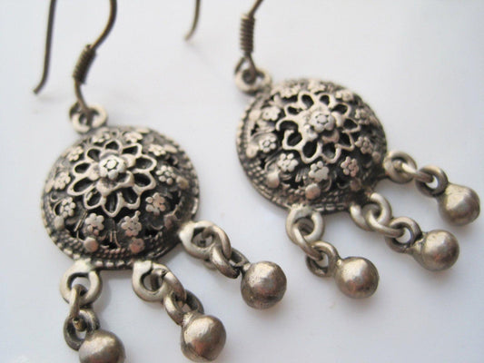 Old Turkish Silver Filigree Drop Earrings for Pierced Ears